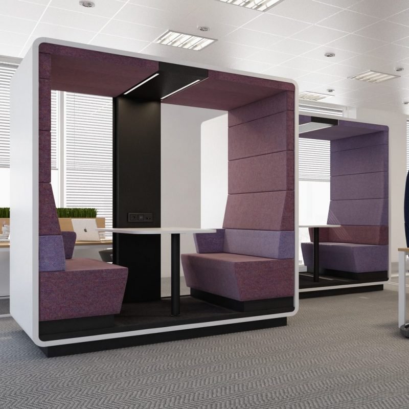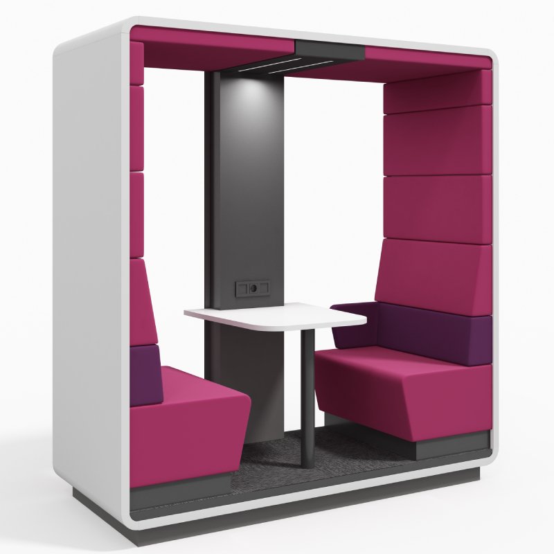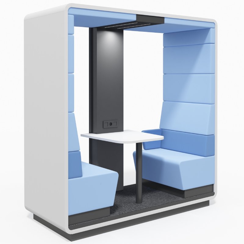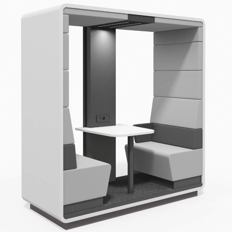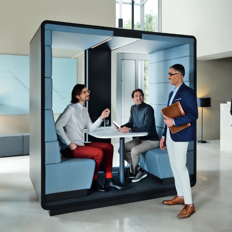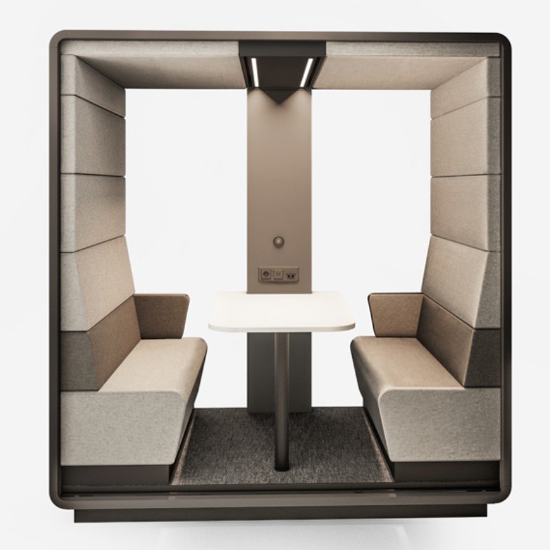 Gesloten overlegplek HUSH Meet Open S, is een akoestisch deels afgesloten ruimte om effectief en ongestoord in te kunnen vergaderen.