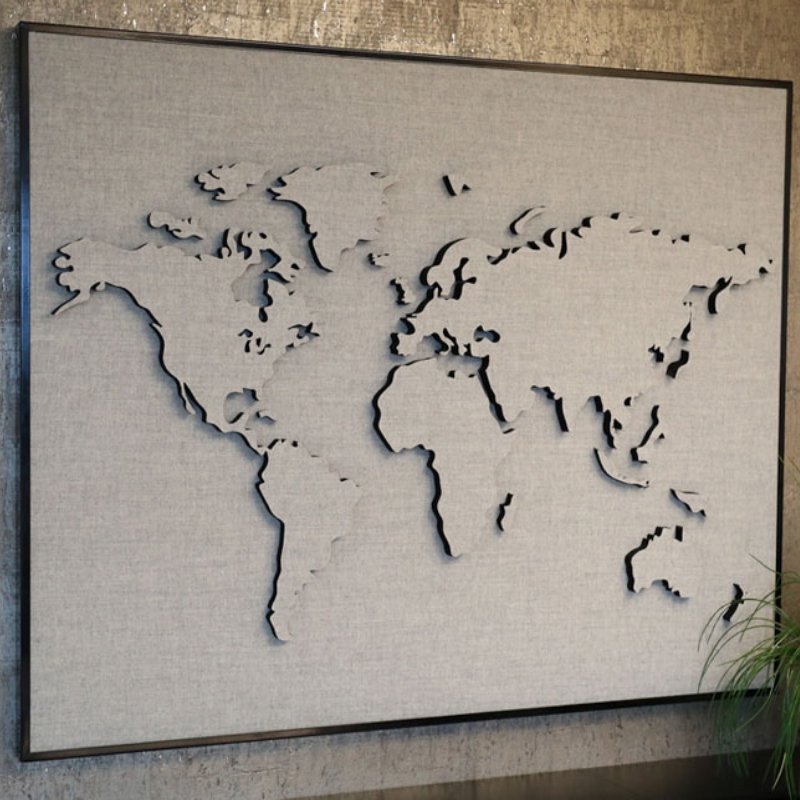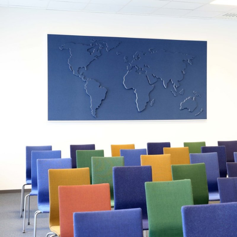 Deze wereldkaart is een unieke akoestisch wandpaneel met een 3D effect in de Hush stoffering. Dit muurpaneel is uitermate geschikt als leermiddel maar natuurlijk ook als decoratief wandmeubel voor in een kantoor(omgeving).