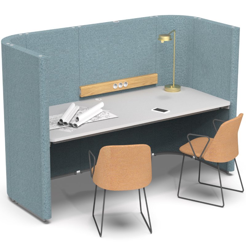 Rondo Lavoro is een akoestische halfgesloten werkplek die privacy en geluidsdemping biedt. Aan dit bureau met akoestische wanden kunt u in alle rust werken, bellen of individuele focus taken uitvoeren.