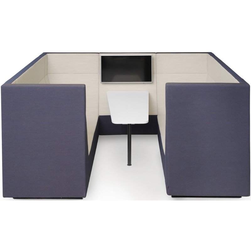 Voo Voo Box is leverbaar in diverse stoffen en kleuren en is te voorzien van een mediapoort, die in de bank of aan de wand wordt gemonteerd. Handig als u uw mobiele apparaten wilt opladen, terwijl u in alle rust met u collega's vergadert. Om de werkplek compleet te maken is Voo Voo Box te voorzien van een tafeltje, ook leverbaar diverse kleuren. Op deze manier kunt u heel eenvoudig de uitstraling van het akoestische kantoormeubilair bepalen, zodat het bij uw interieur past!
