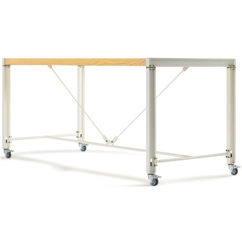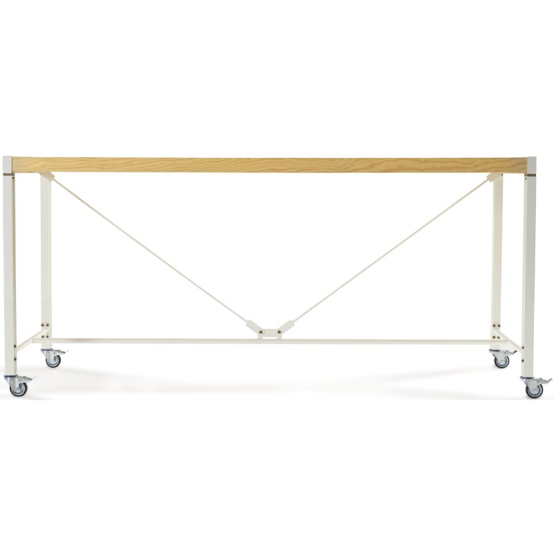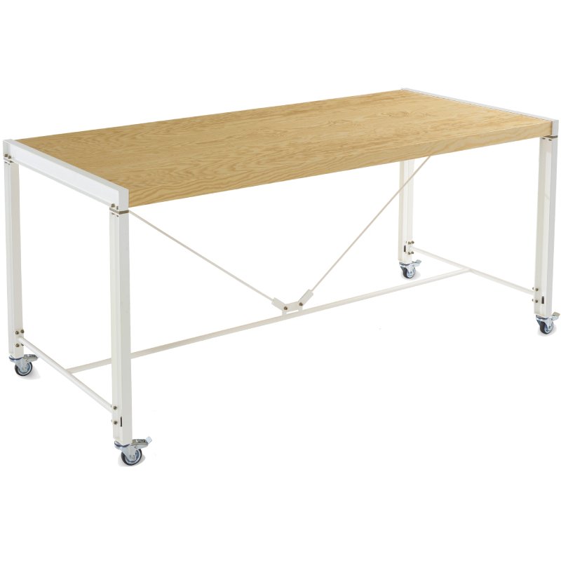Verrijdbare tafel Atelier heeft een stevig metalen frame en een houten tafelblad, afgewerkt met een beitskleur naar keuze. Atelier houdt een ruimte flexibel en kan waar nodig naartoe gerold worden.