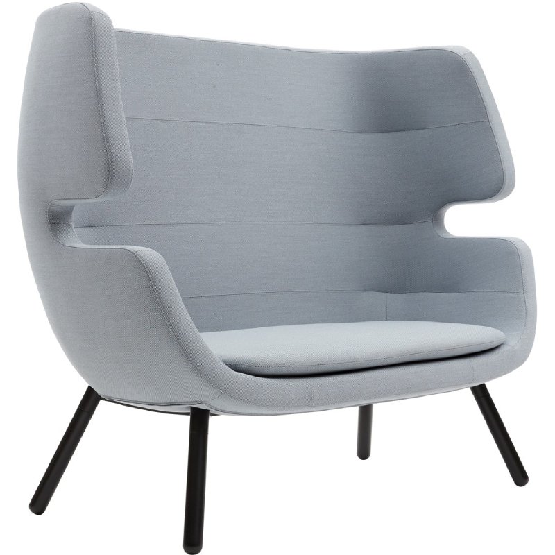 Deze bank met oren biedt een afgeschermde plek om even te ontkomen aan de hectiek of om rustig te overleggen. De bijzondere vormgeving maakt het een welkome toevoeging aan het kantoorinterieur. De houten pootjes geven het ontwerp wat luchtigheid.