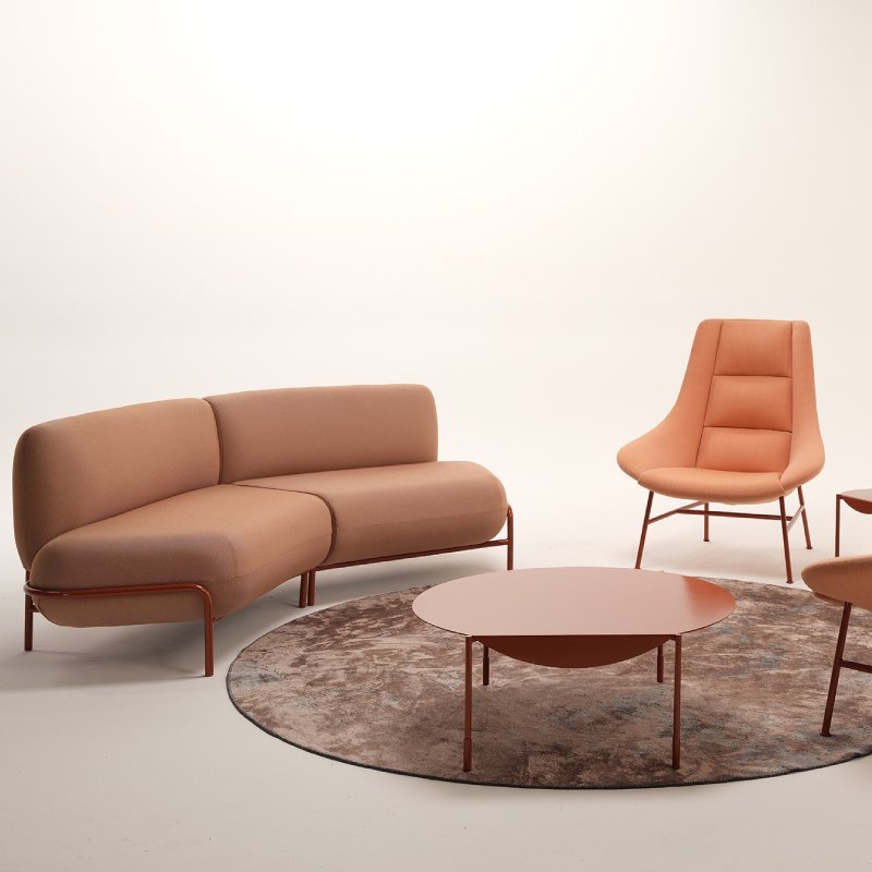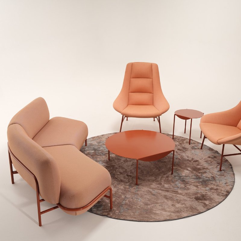 De loungebank kan gestoffeerd worden met diverse stoffen en kleuren. Zo kunt u het zitmeubilair eenvoudig samenstellen, zodat de bank bij het interieur past.