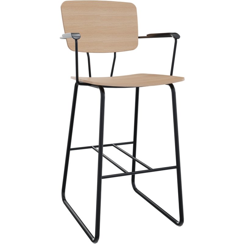 De kruk is mogelijk als een counter stoel (62cm zithoogte) of als barstoel (82cm zithoogte). De barkruk met voetensteun is mogelijk met of zonder armleuningen. Als u voor armleuningen kiest is het opdekje standaard van hout in de kleur zwart.
