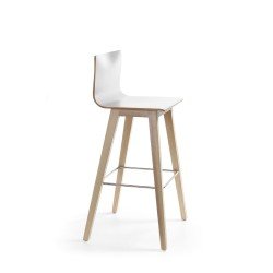 De comfortabele zitschaal van de houten barkruk bestaat uit multiplex, mogelijk in diverse kleuren. Op deze manier kun je heel eenvoudig de uitstraling van de kruk bepalen zodat deze bij het interieur past. De kruk liever met een gestoffeerde zitting? Dat kan! Bel of mail ons om de mogelijkheden te bespreken.
