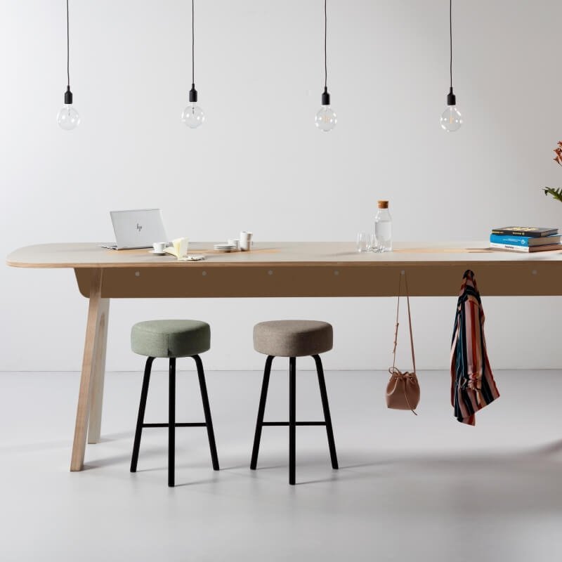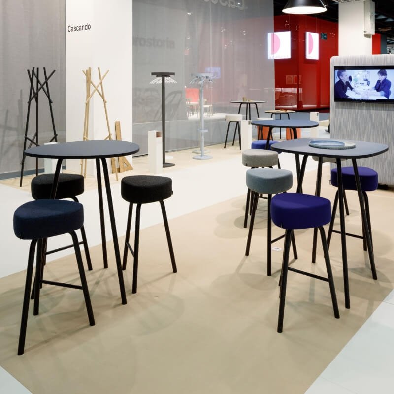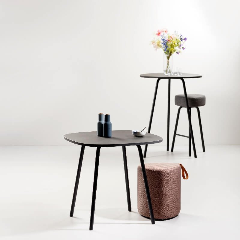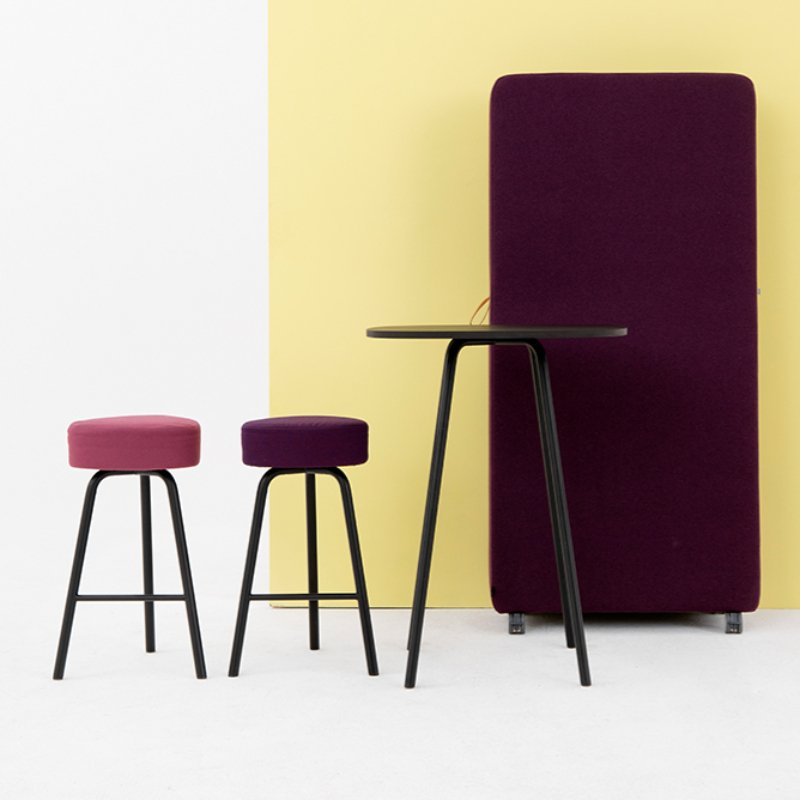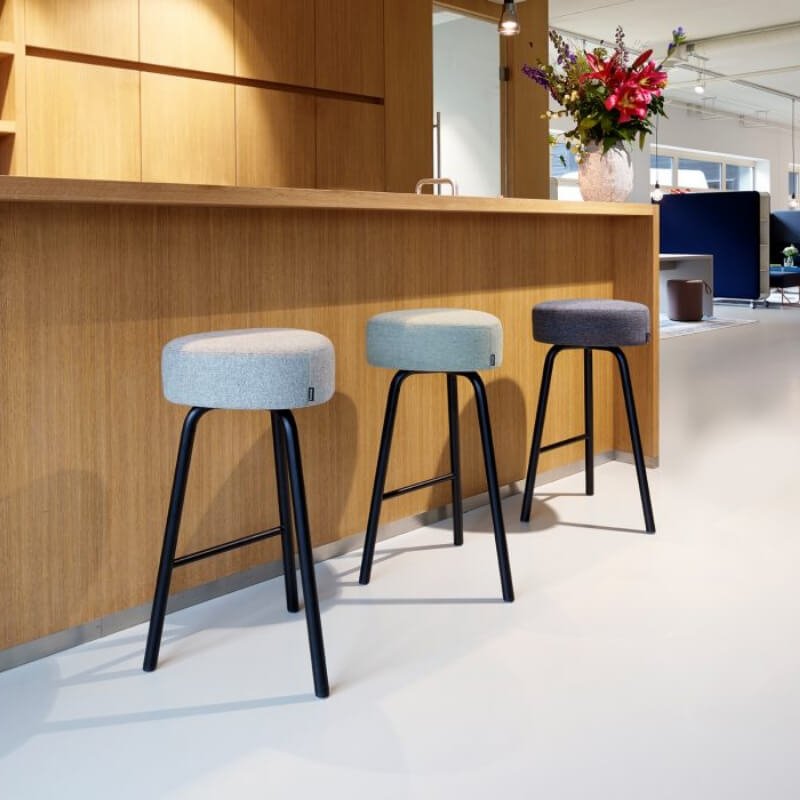 De zitting van de kruk is mogelijk in verschillende stofferingen en kleuren. Naast barkruk Pully, is poef Pully ook leverbaar. Combineer de hoge kruk met een statafel voor een complete set. Kruk Pully is mogelijk in twee verschillende vormen: driehoek en vierkant. De speelse barkruk is voorzien van een stalen onderstel in matzwart (gepoedercoat).