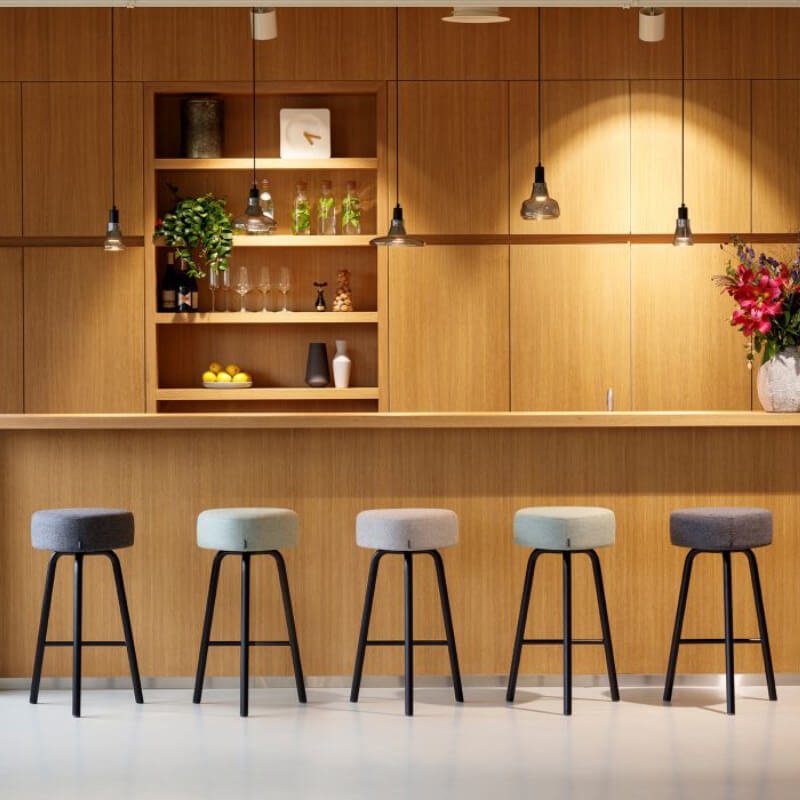 Barkruk Pully is een comfortabele barstoel met een uniek design. De 75cm hoge kruk is voorzien van een gestoffeerde zitting met stalen frame en voetensteun voor extra comfort. Door de vorm en de stoffering heeft de barkruk een vriendelijke uitstraling en geeft een fraai accent in het interieur.
