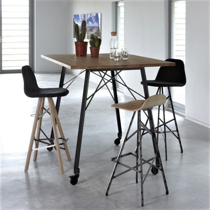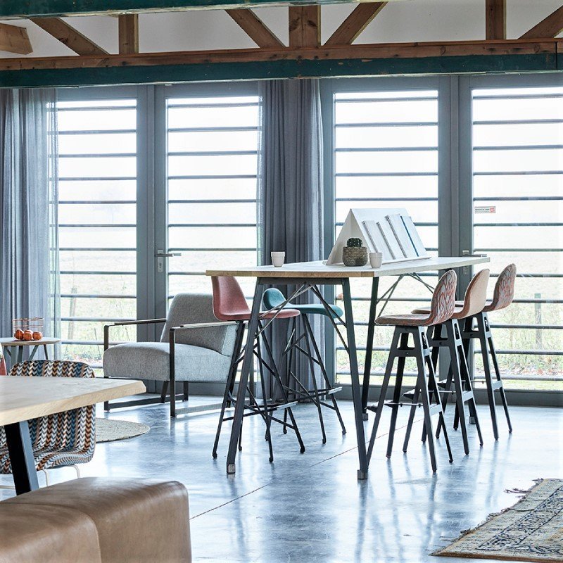 Bartafel Straight past in projecten, kantoren, hotels maar ook in huis. De hoge houten tafel is mogelijk in diverse kleuren onderstel en is daarnaast te voorzien van wielen. Het blad van de 105cm hoge tafel is gemaakt van massief eikenhout en is afgewerkt met Woodlock. Dit is een matte behandeling waarbij de natuurlijke uitstraling wordt behouden. Het hout lijkt onbehandeld maar krijgt wel een stevig slijtvast pantser.