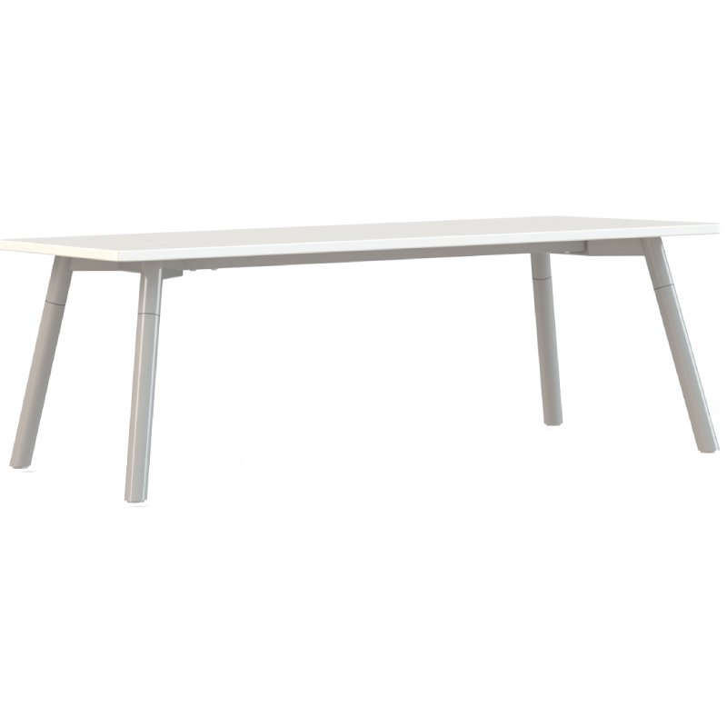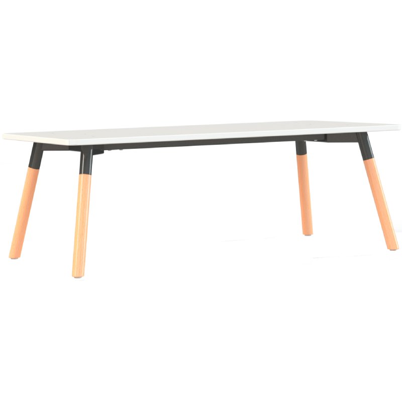Let op: De tafel met melamine tafelblad (enkelen hiervan) i.c.m. metalen poten in zwart, wit of aluminium of houten poten in beuken blank heeft een levertijd van ca. 1 week. Overige combinaties hebben een levertijd van ca. 6-8 weken.