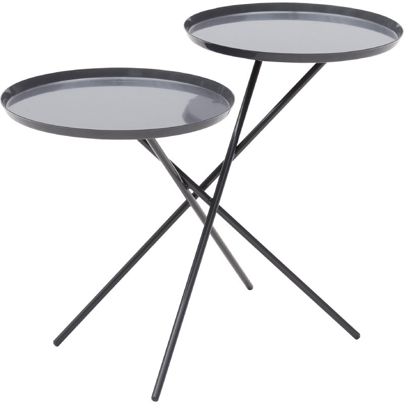 De tafelbladen hebben elk een diameter van 29cm. De totale breedte van deze fraaie tafel is 58cm. Hij is daarnaast 28,5cm diep en 41cm hoog.