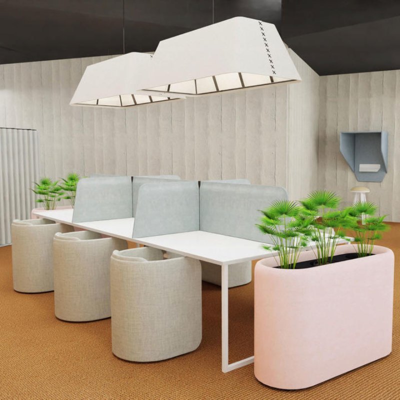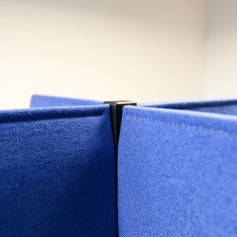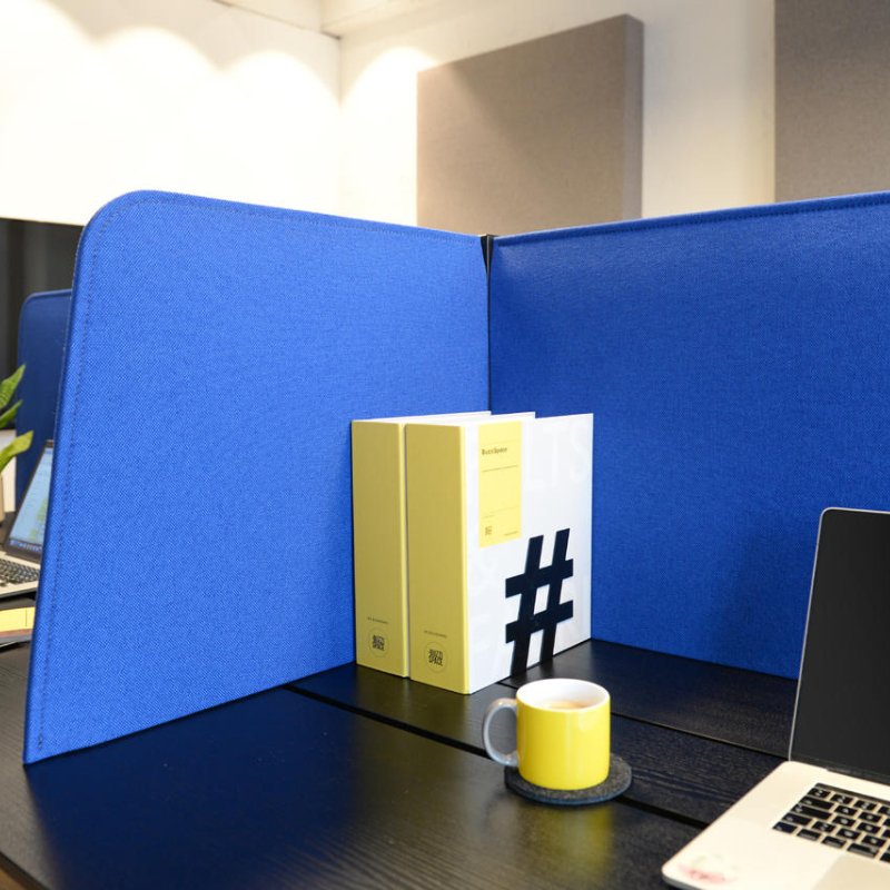 Het scherm is verkrijgbaar in diverse modellen, maten en kleuren. De schermen zijn voorzien van een Felt stoffering, dit vilt is geheel vervaardigd uit gerecycled materiaal en heeft een zachte textuur, leverbaar in diverse kleuren. De akoestische bureaupanelen worden los op het bureaublad geplaatst.