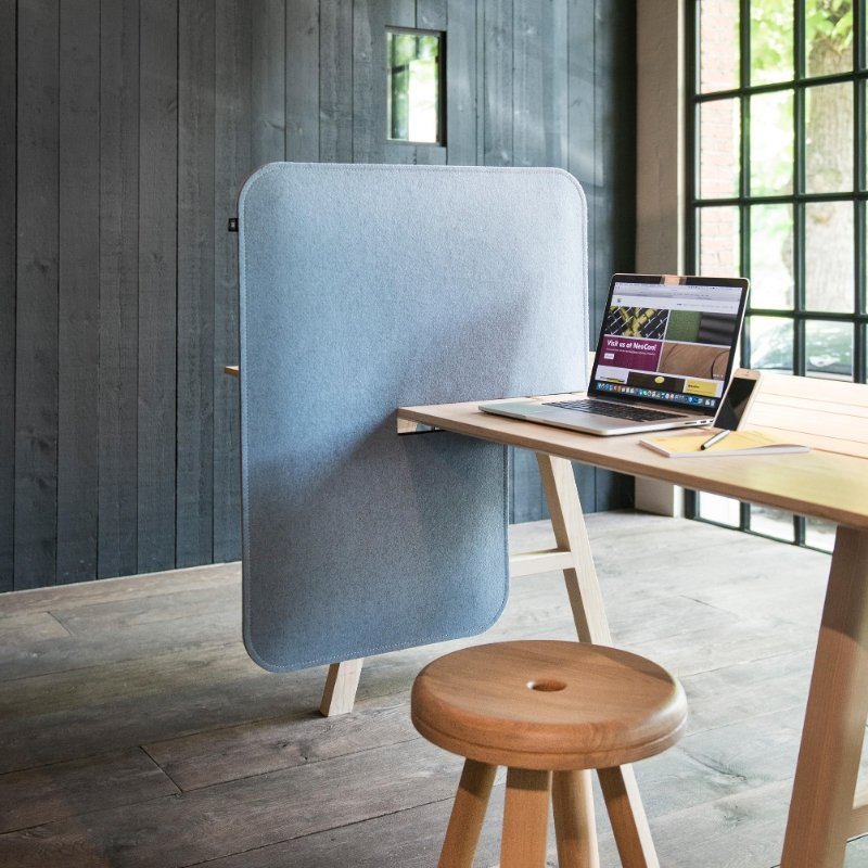 De BuzziDesk Split is een vrijstaand scherm die over het bureaublad geschoven wordt. Deze schermen creëren meerdere werkplekken aan een lange tafel en zorgen voor meer privacy. Daarnaast heeft het scherm ook een geluiddempende werking voor een persoonlijke en stille werkplek. De Split heeft een inkeping die over het bureaublad geschoven wordt en vervolgens vastgeklemd wordt met een draaidop.