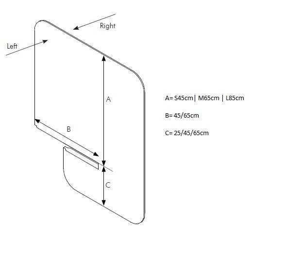 | Afmeting | 45cm of 65cm breed x 45cm, 65cm of 85cm paneelhoogte boven bureau |