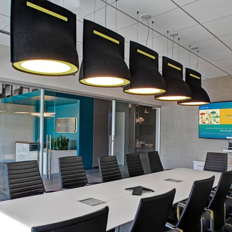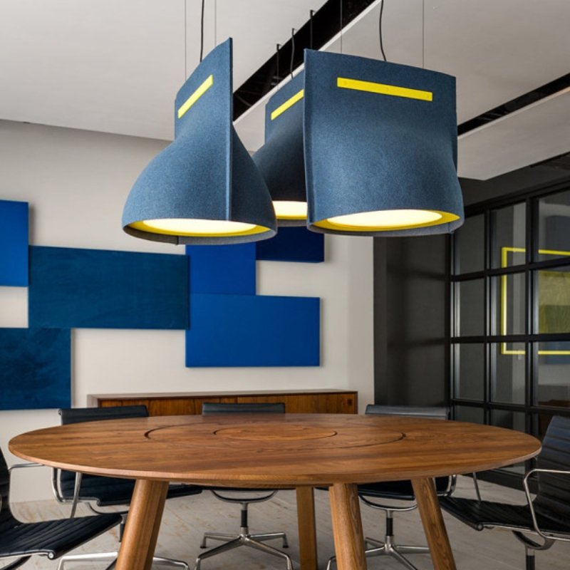 De akoestische hanglamp van BuzziSpace zorgt voor een prettige akoestiek. Hang de lamp dicht bij een geluidsbron voor het beste effect. Vaak is dit boven een vergadertafel of loungestoel waar veel gebeld en gepraat wordt. De zachte materialen zijn een mooie toevoeging voor elke werkomgeving.