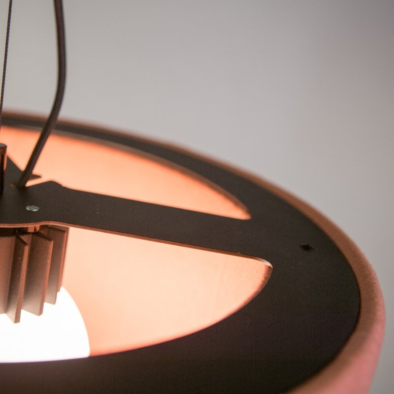 De geluiddempende lamp is voorzien van een zwarte plafondkap en 1 of 2 zwart gestoffeerde stroomkabel(s) van 2 meter lang. BuzziProp is mogelijk in diverse uitvoeringen in kleur naar keuze.