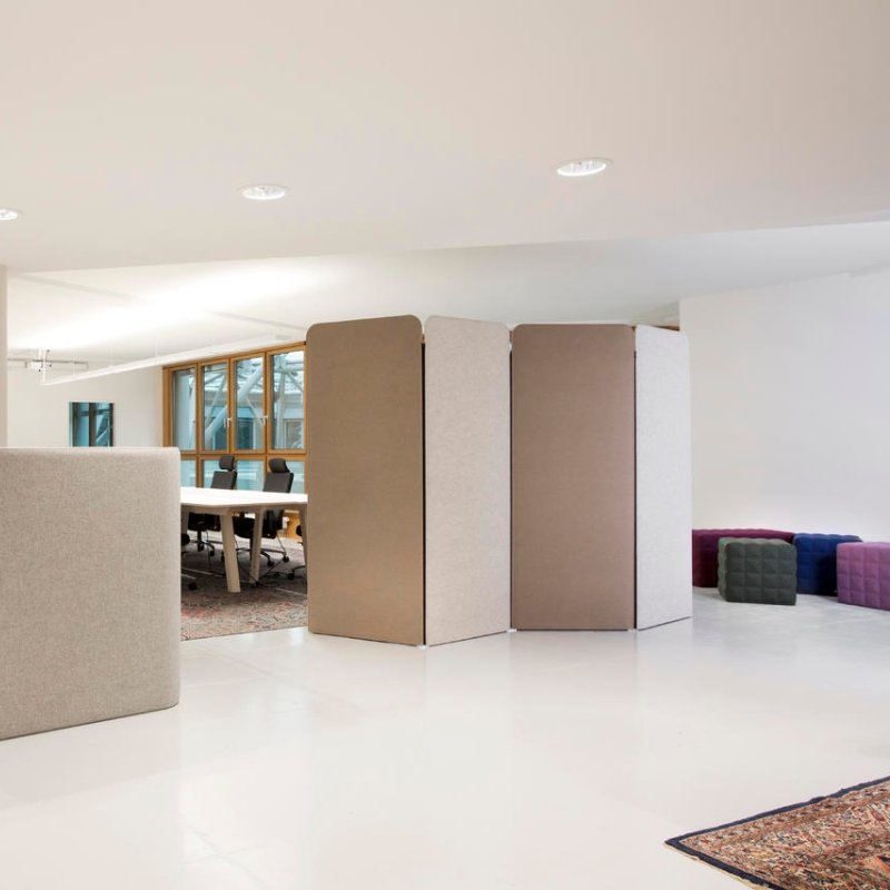 Deze akoestische roomdivider is naar wens samen te stellen en zorgt voor een afscheiding in een grote open ruimte. Het wordt niet aangeraden om de BuzziScreens in één rechte lijn te plaatsen: Go zigzag! Voor extra ondersteuning kunt u de panelen ook voorzien van een paneelvoet (BuzziFoot).