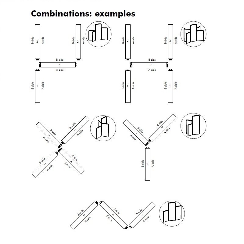 Deze akoestische ruimteverdeler is door de vele kleurmogelijkheden een echte blikvanger in de ruimte en past dankzij het strak design bij de meest uiteenlopende interieurs. Het wordt niet aangeraden om de BuzziScreens in één rechte lijn te plaatsen: Go zigzag! Kijk bij de afbeeldingen voor de diverse modellen. Kies uw favoriete stofkleur en opstelling.