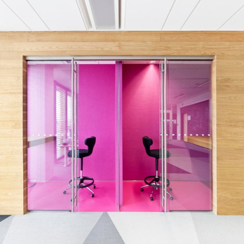 BuzziSkin is een akoestisch behang dat de ruimte een speciale uitstraling geeft en tegelijkertijd de akoestiek verbetert door hoge tonen te absorberen.