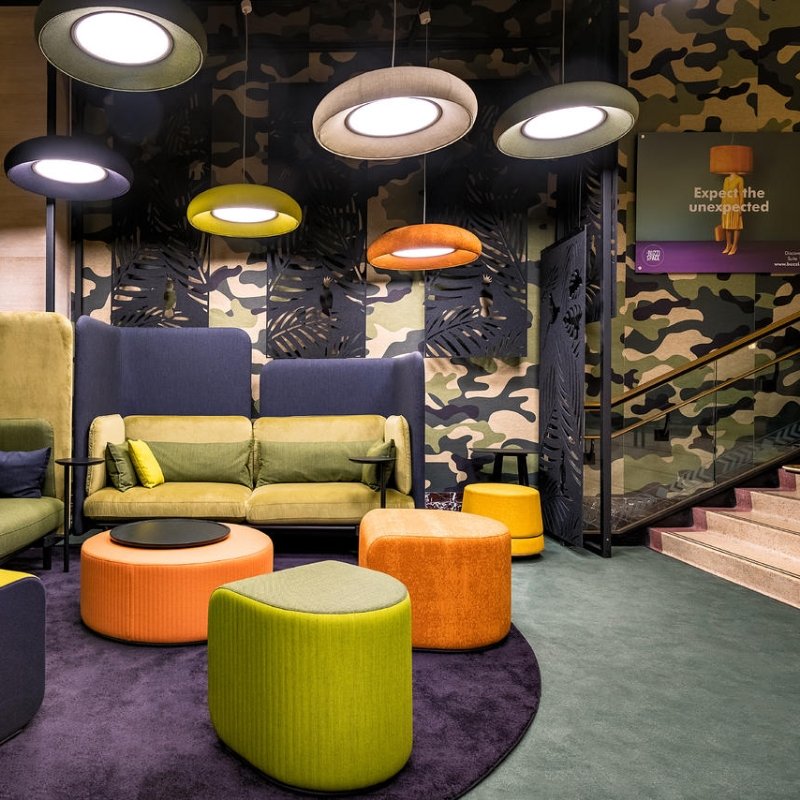 BuzziSkin Print akoestisch behang geeft de ruimte een speciale uitstraling en verbetert tegelijkertijd de akoestiek door hoge tonen te absorberen.