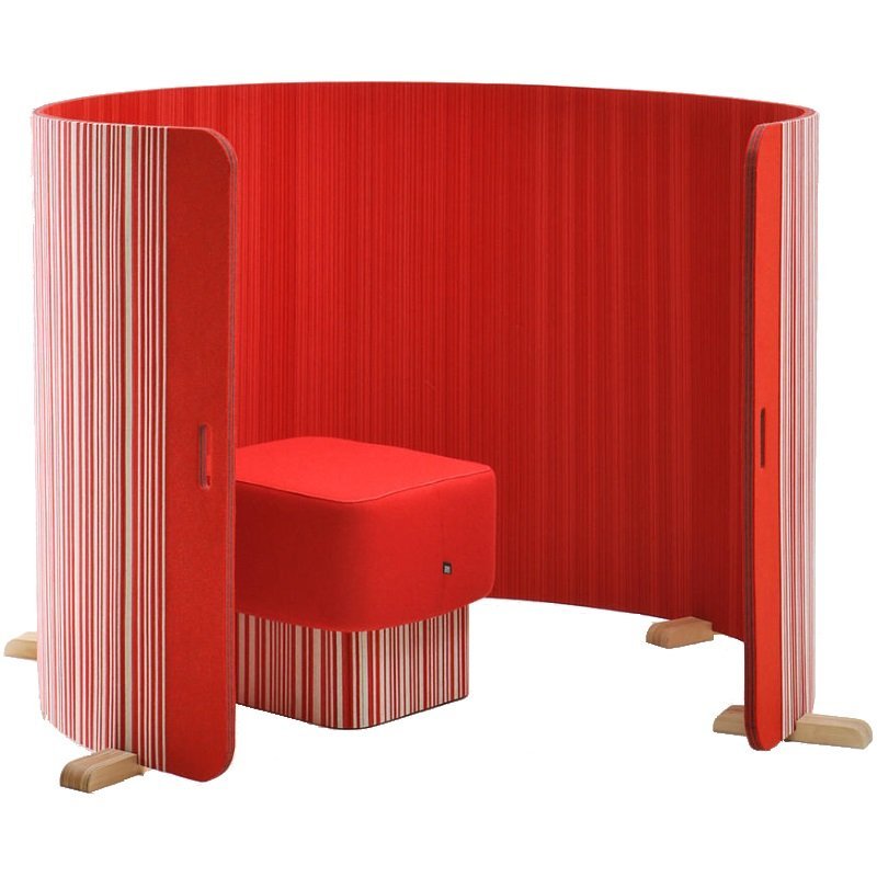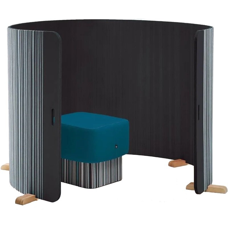 Het wordt niet aangeraden om de BuzziTwist in één rechte lijn te plaatsen: Go curvy! BuzziTwist is een geluidsabsorberend gebogen scherm waarmee u ook een hoekje kunt creëren voor privacy of als room divider kan dienen. Bij BuzziTwist is er zelfs de optie om een andere kleurencombinatie te kiezen voor de achterkant.