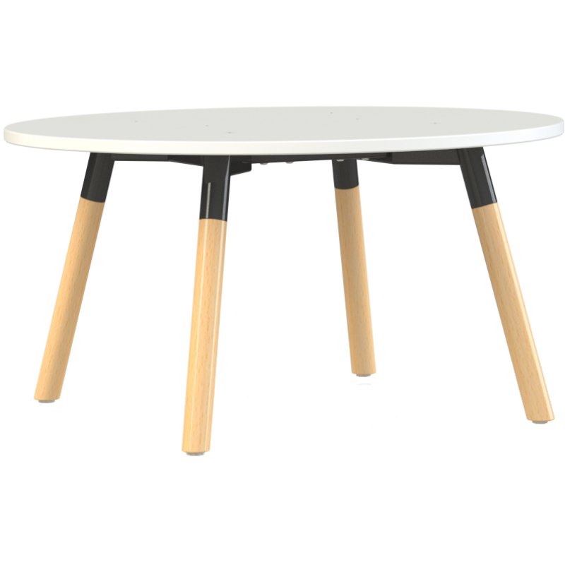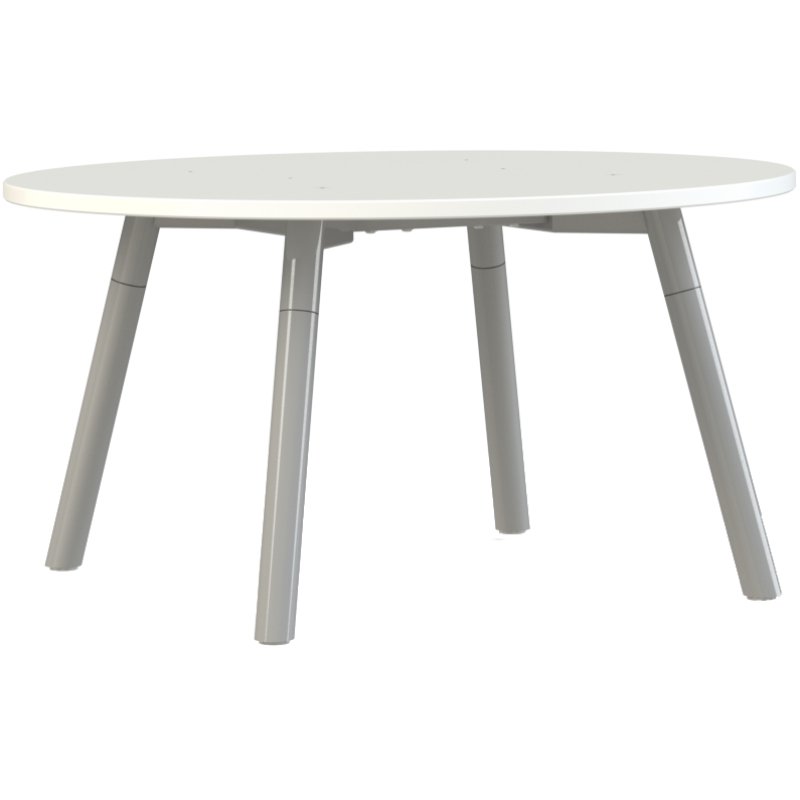 De ronde tafel is voorzien van een 4-poots metalen- of houten poten, in diverse kleuren. De houten poten zijn voorzien van metalen frame, mogelijk in verschillende kleuren.