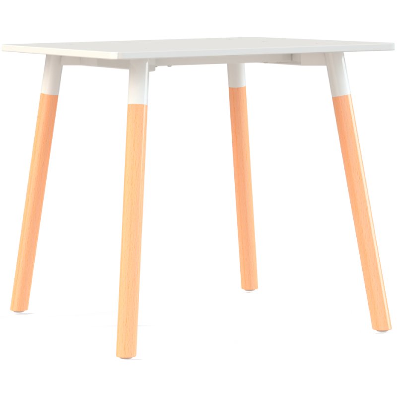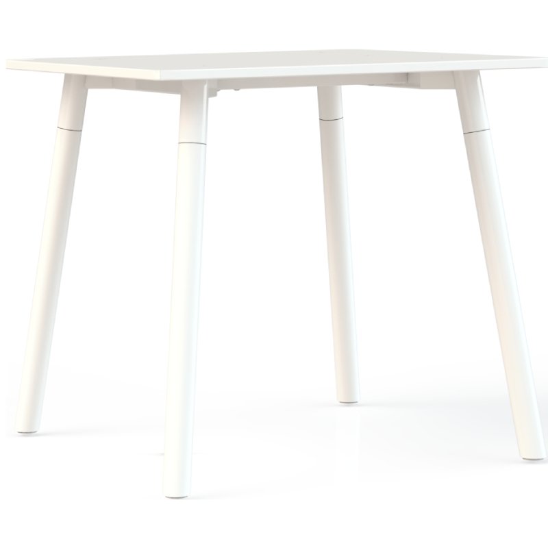 De vierkante tafel is voorzien van een 4-poots metalen- of houten poten, in diverse kleuren. De houten poten zijn voorzien van metalen frame, mogelijk in verschillende kleuren.