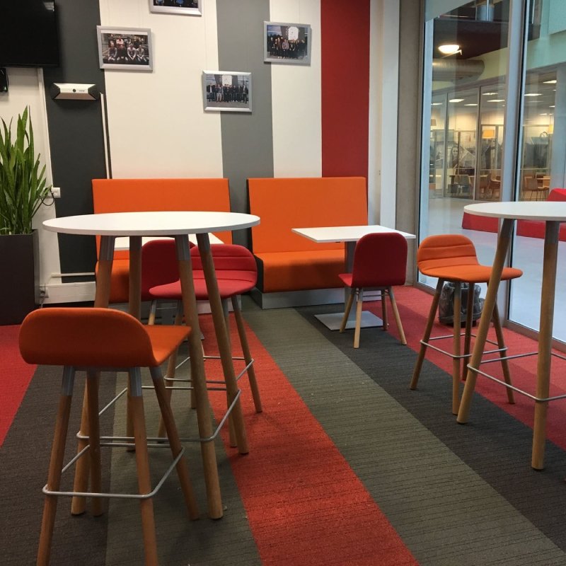 Corner statafel rond van 110cm hoog is een multi inzetbare tafel die uitstekend gebruikt kan worden als kantinetafel. Deze hoge tafel is ook een ideale tafel voor informele overlegmomenten voor de flexibele werkplek.