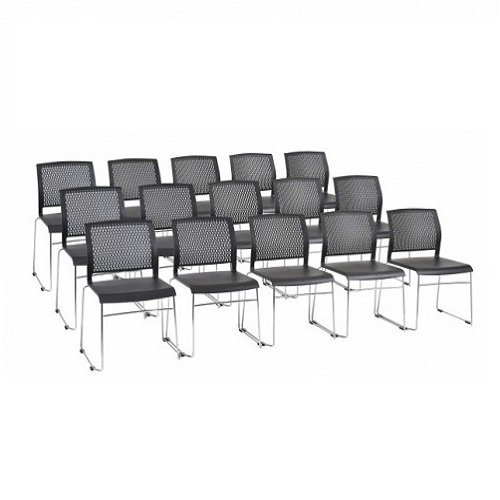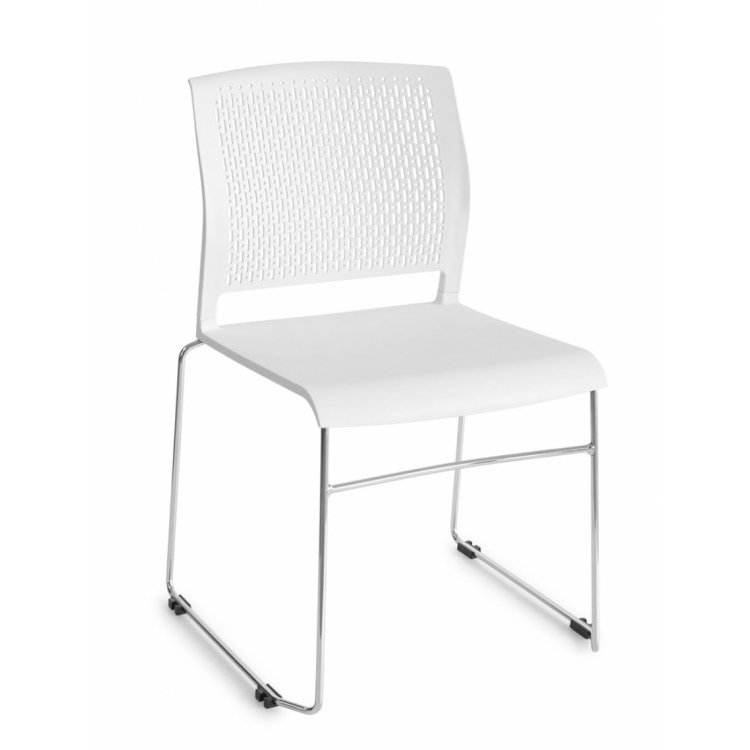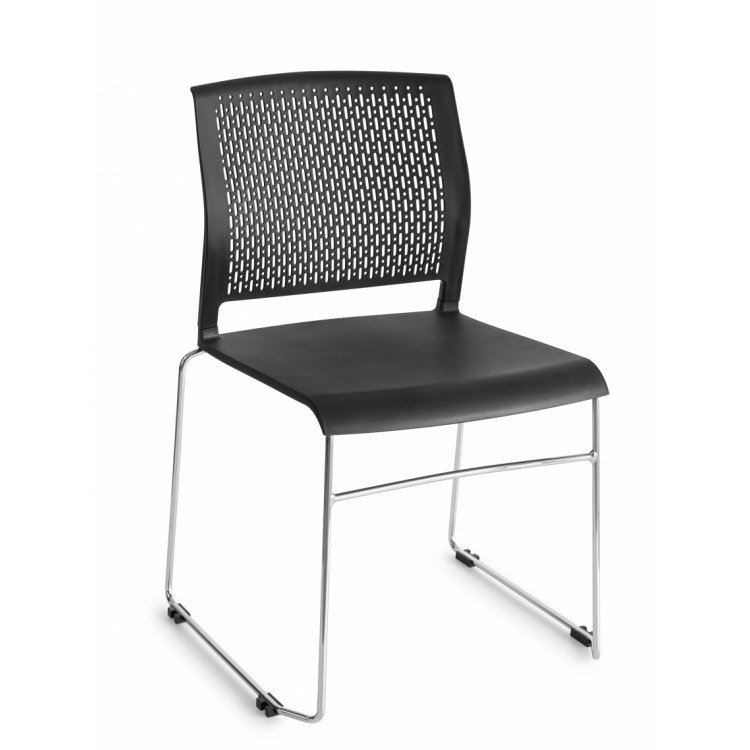 De kunststof kantinestoel heeft een sledeframe dat stapelbaar is zodat u de stoel eenvoudig kunt verplaatsen en opbergen.