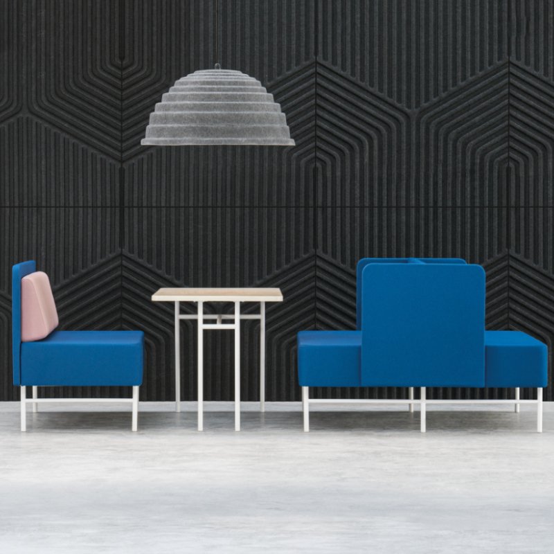 Multi Bench biedt u ook de oplossing om als akoestische bank te fungeren. Door middel van zijpanelen kunt u het geluid beter dempen en privacy creëren voor de gebruiker.