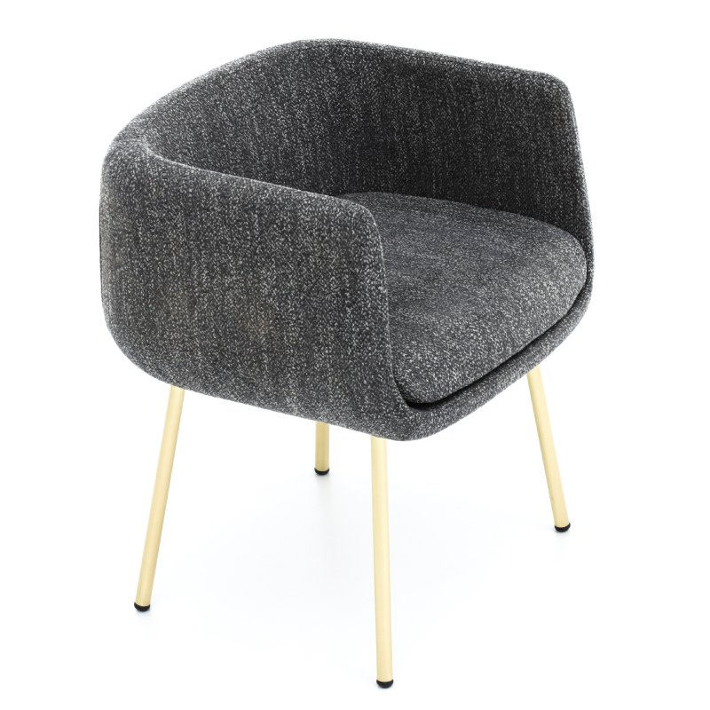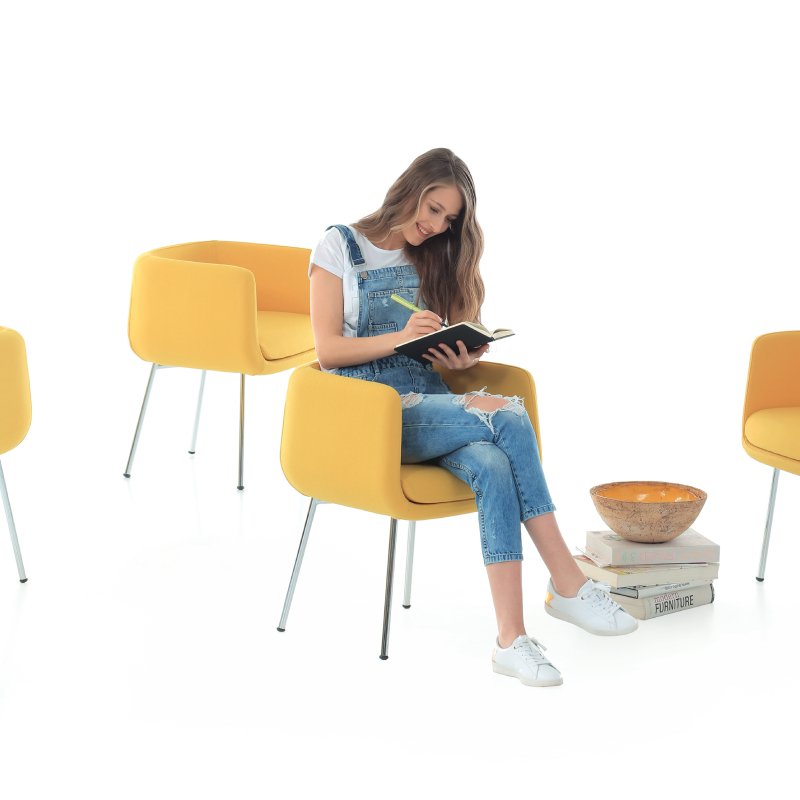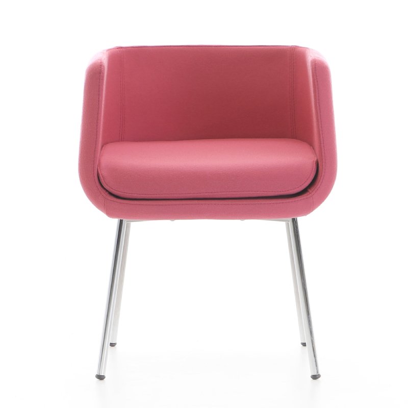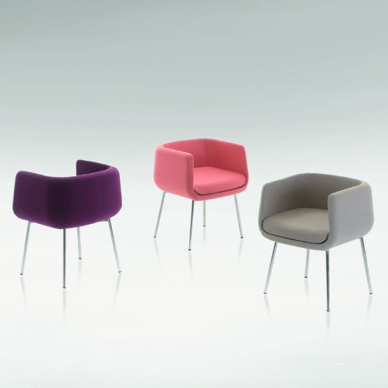 De design loungestoel is leverbaar in diverse stoffen en kleuren. Hierdoor past de stoel ook bij de meeste kantoorinrichtingen.