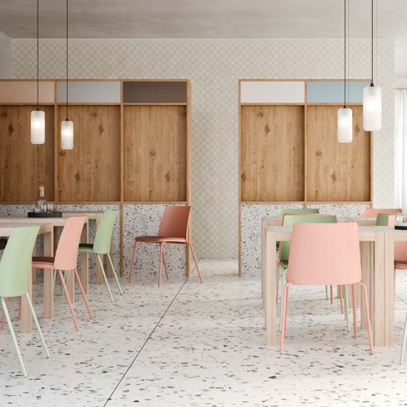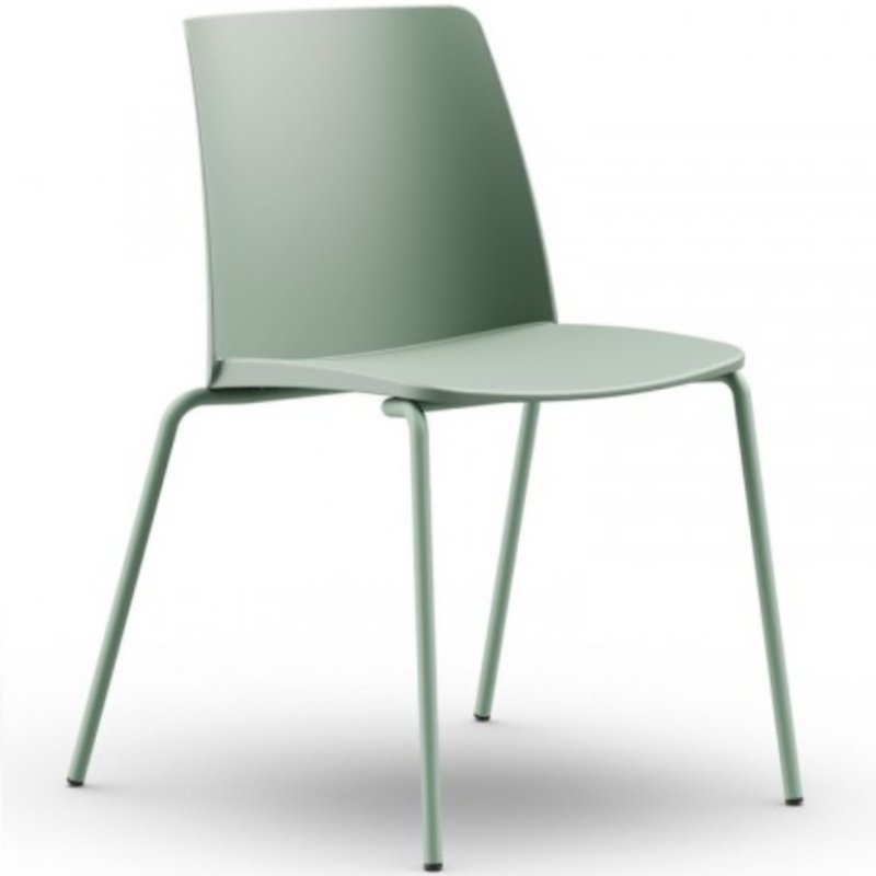 Stoel Grazie heeft een bijzondere kleurstelling en een simplistisch en tijdloos design. Het 4poot frame is gepoedercoat in exact dezelfde kleur als de zitschaal. Grazie heeft een comfortabele zitting, maar voor extra comfort kunt u kiezen voor een opdekstoffering.