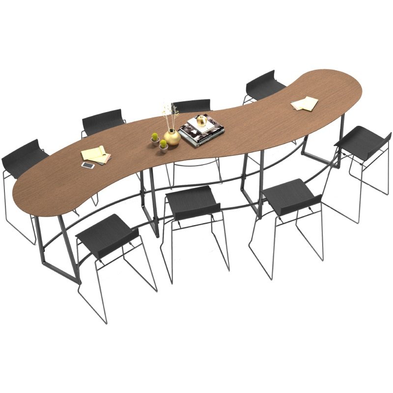 De lange tafel heeft een gebogen design voor een unieke en speelse uitstraling. Sta vergadertafel Buggy Snake heeft een tafelhoogte van 110cm en een tafeldiepte van 70cm.