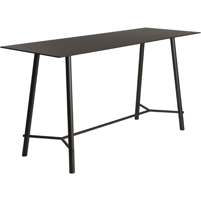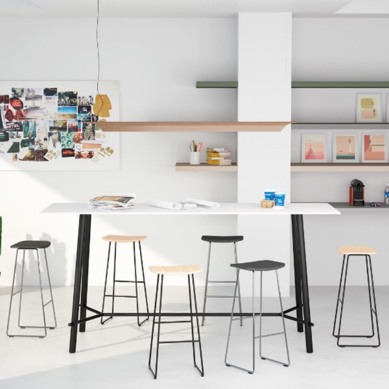 Hoge vergadertafel Record Meeting is een rechthoekige design tafel dat stijl en veelzijdigheid combineert. De kruisende lijnen van het onderstel van de statafel geeft de tafel een elegante en gedetailleerde uitstraling.