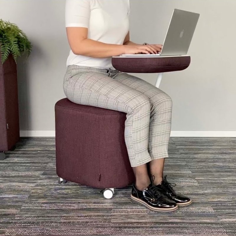 De iQseat bestaat uit een stoel met tafelblad waar u even een momentje voor uzelf kunt vinden en met uw laptop comfortabel kunt werken. Leun naar achteren tegen de zachte rugleuning aan als u even wilt zitten of draai de rugleuning om en gebruik deze als werkblad.