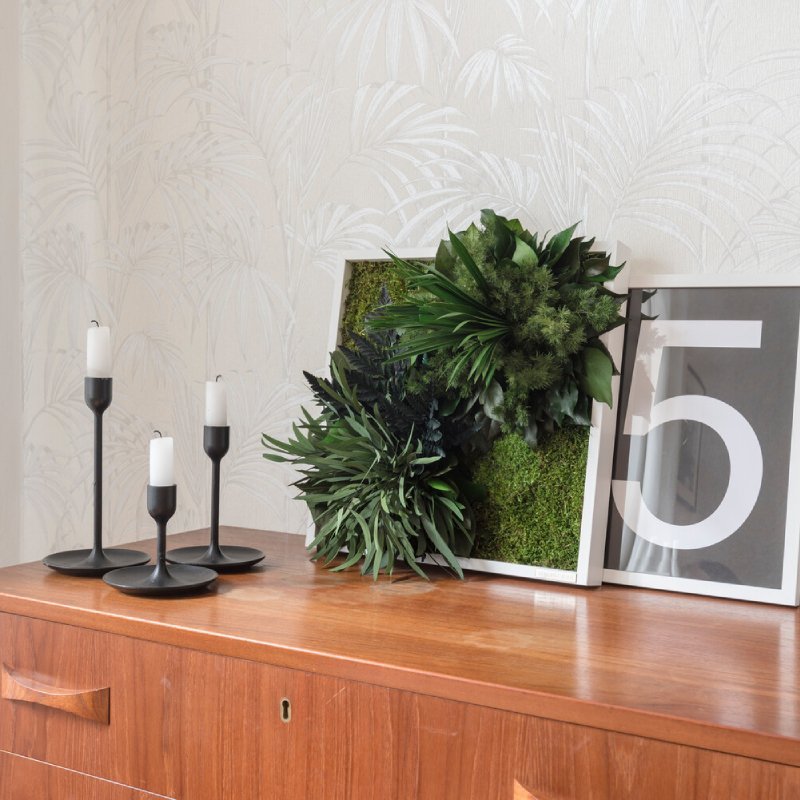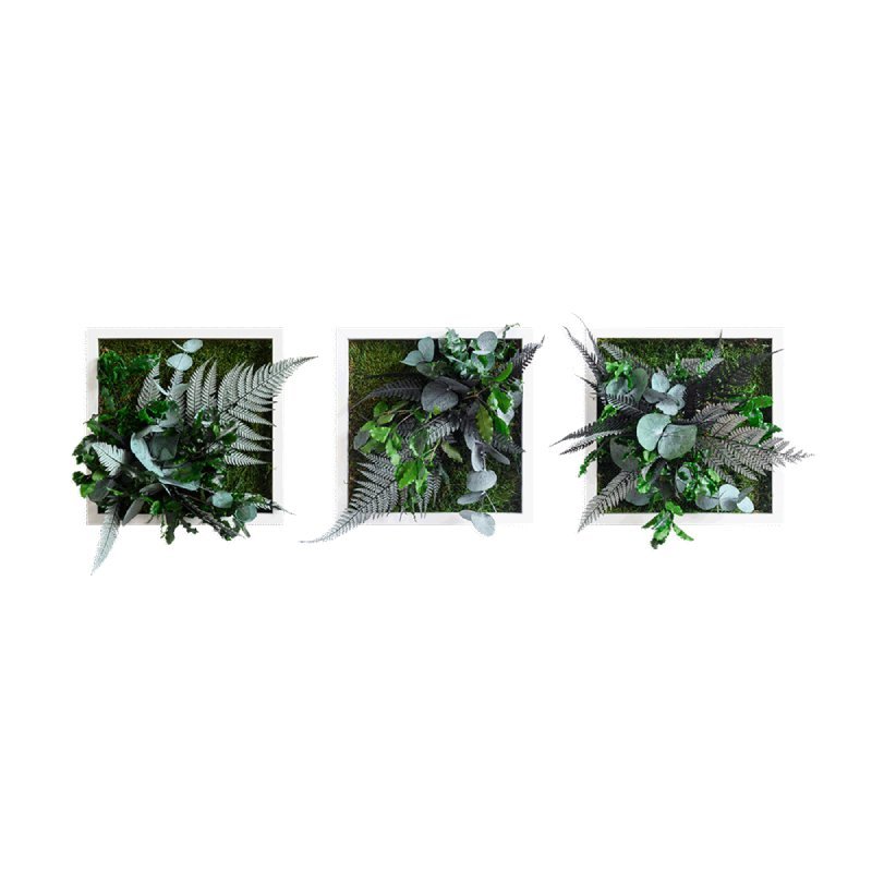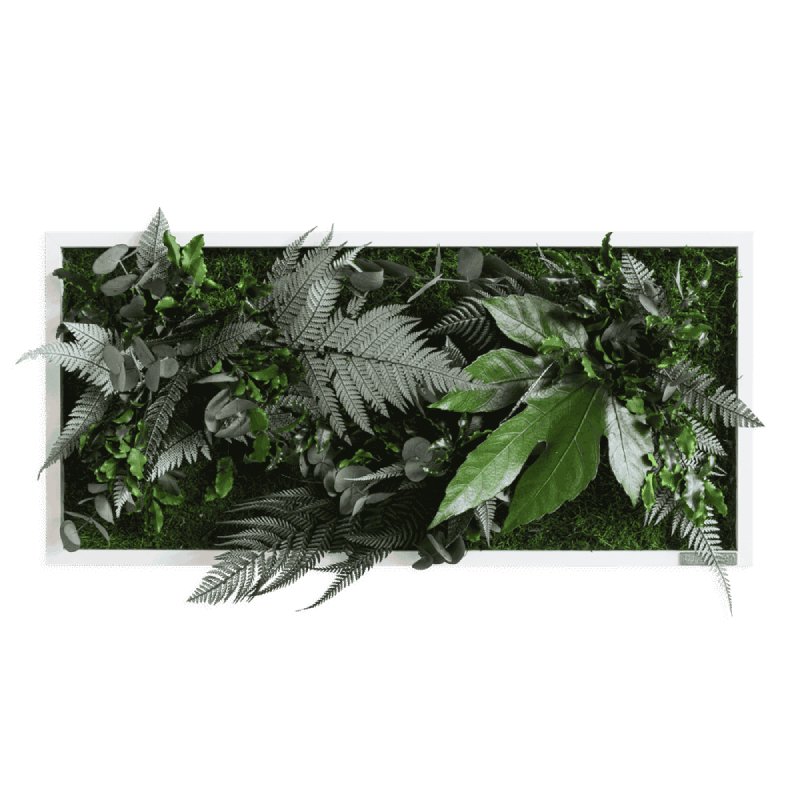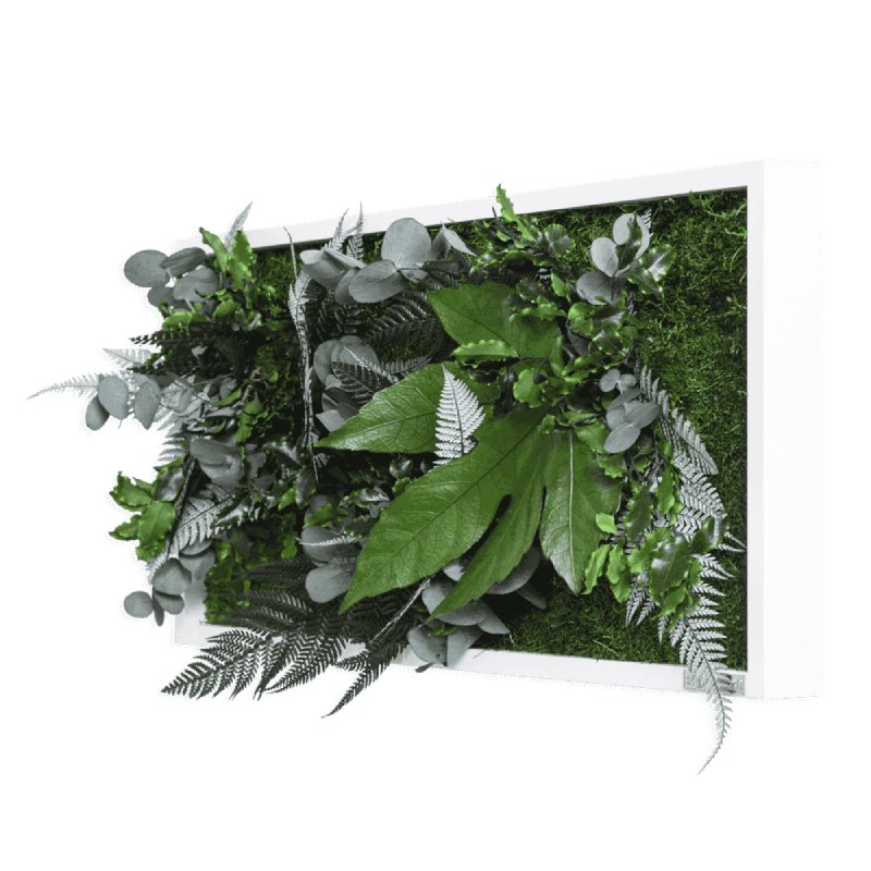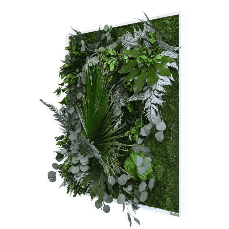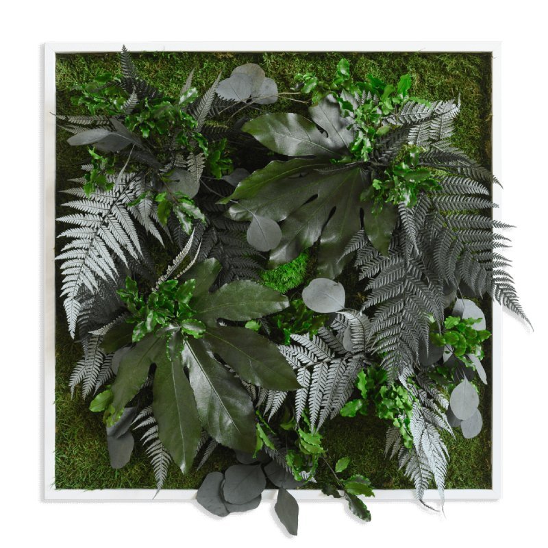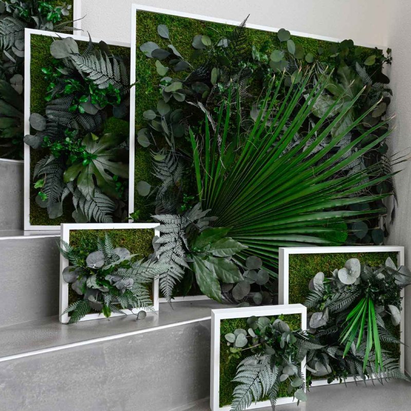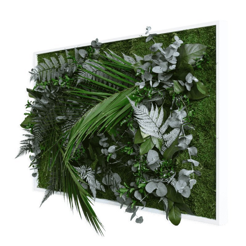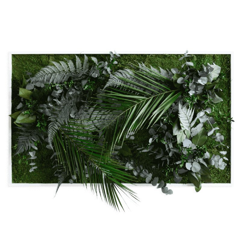 Creëer een verticale tuin met de groene mosschilderijen. Deze tableaus zijn leverbaar in diverse afmetingen en voorzien van mos en tropische planten. De planten zijn driedimensionaal en geven een echt wow-effect. Elk exemplaar is uniek, handgemaakt en van hoge kwaliteit.