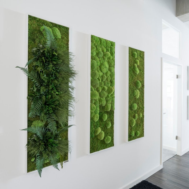 Benieuwd wat er verder mogelijk is met mos in uw kantoor? Wij verzorgen ook volledige moswanden op maat, in verschillende vormen of voorzien van uw logo.