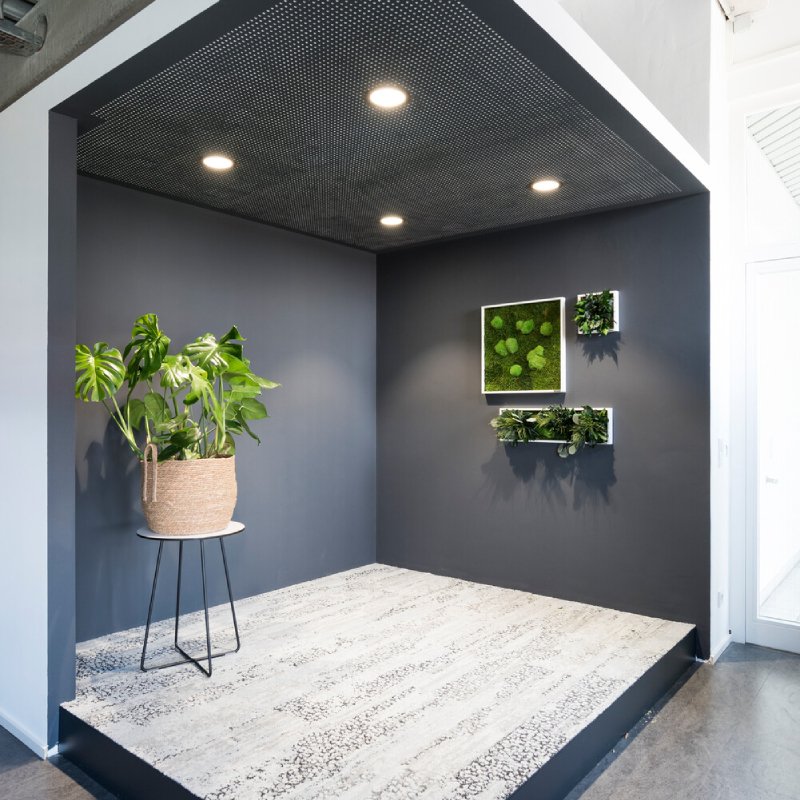 De mosproducten hebben een geluidsabsorberende werking en dragen zo bij aan een prettige akoestiek. Daarnaast zijn de mospanelen moeilijk ontvlambaar volgens het B1 brandveiligheidscertificaat. Voor een prettige en veilige werkomgeving.