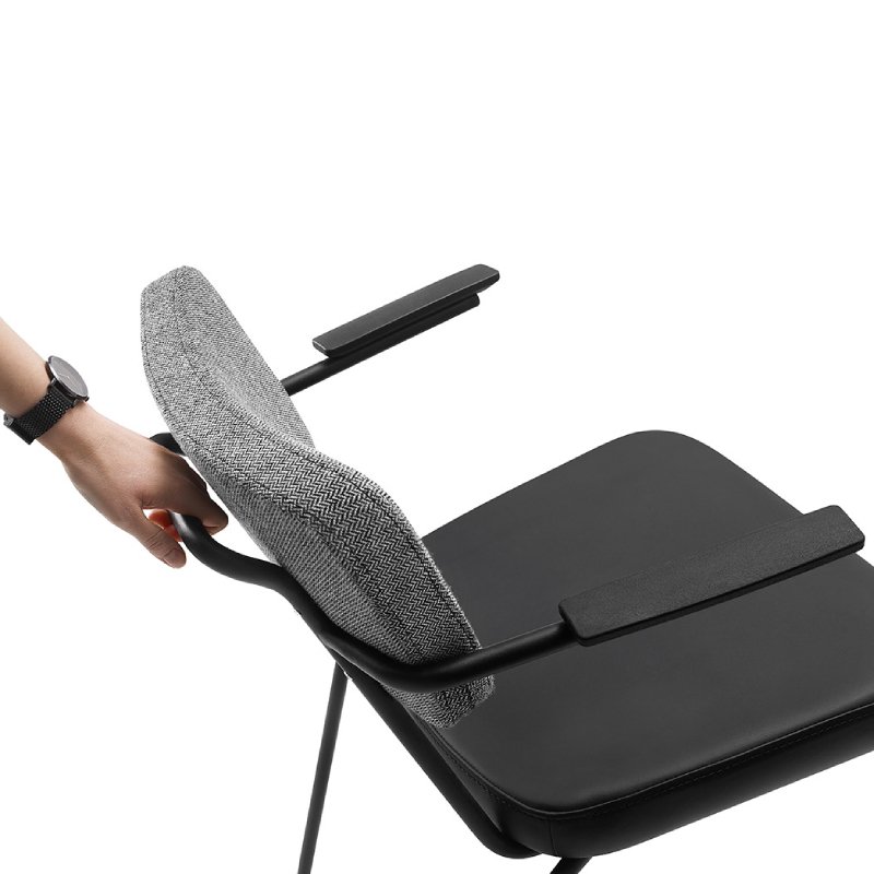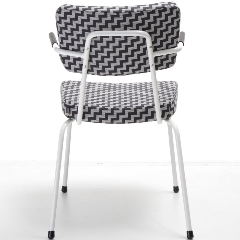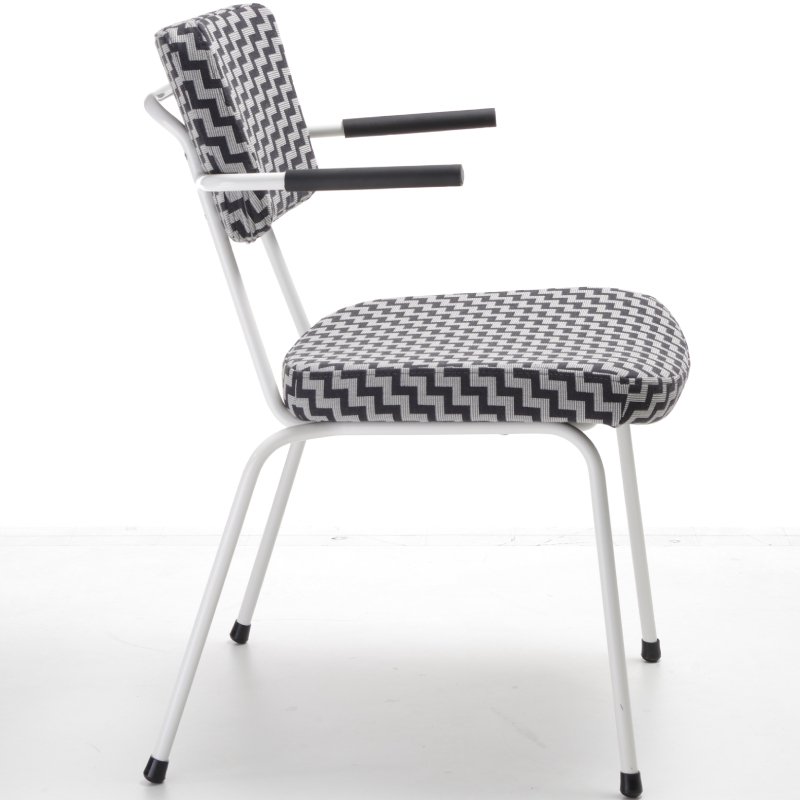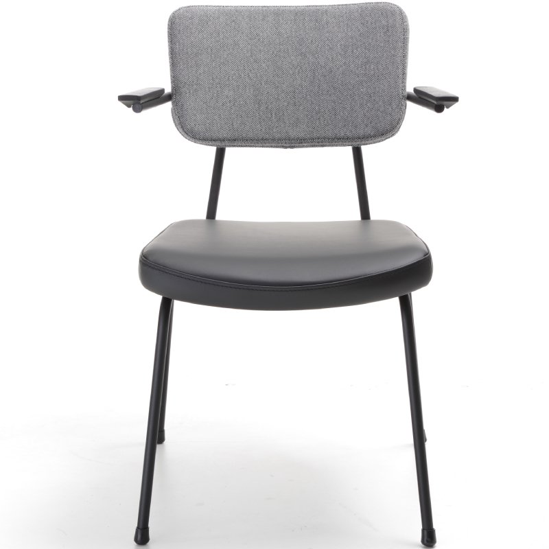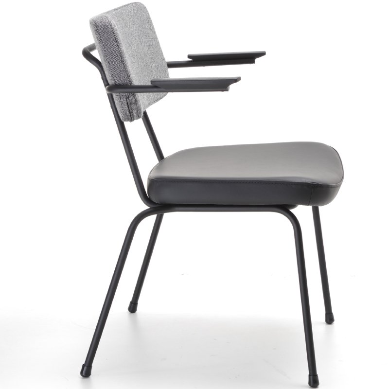 Stoel Epocc met armleuningen is een comfortabele horeca/kantinestoel die een jaren '50 stijl heeft. De combinatie van de kleurrijke frames en mogelijke stofferingen en kleuren van de rugleuning en zitting fleurt jouw interieur direct op. De voeten van de stoel zijn altijd in zwart kunststof.