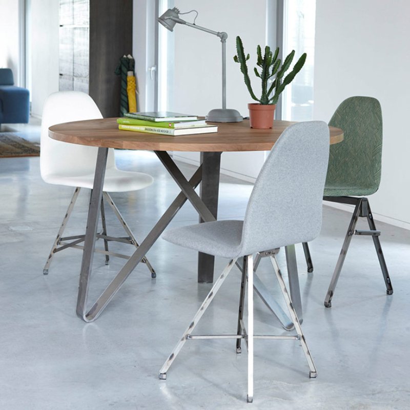 Stoel Square kenmerkt zich door een stalen T-profiel op ambachtelijke wijze gelast. Square is ontworpen door Ruud-Jan Kokke voor het Nederlandse merk Spoinq.