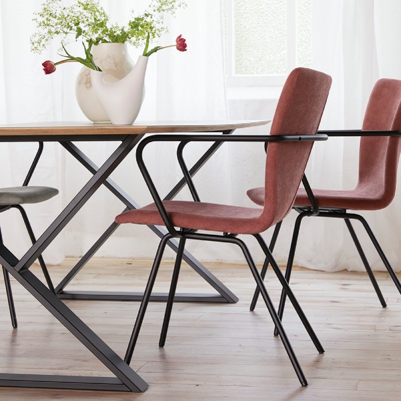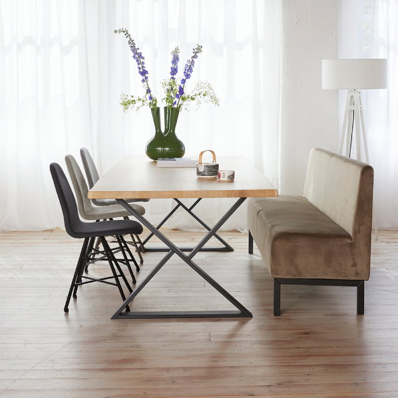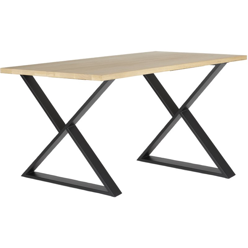 Het blad van deze multi-inzetbare tafel is gemaakt van massief eiken van 40mm dik. De randen hebben een natuurlijke (gebogen) vorm, daarnaast heeft het blad mooie rustieke noesten. Deze noesten geven Cross zijn natuurlijke uitstraling.