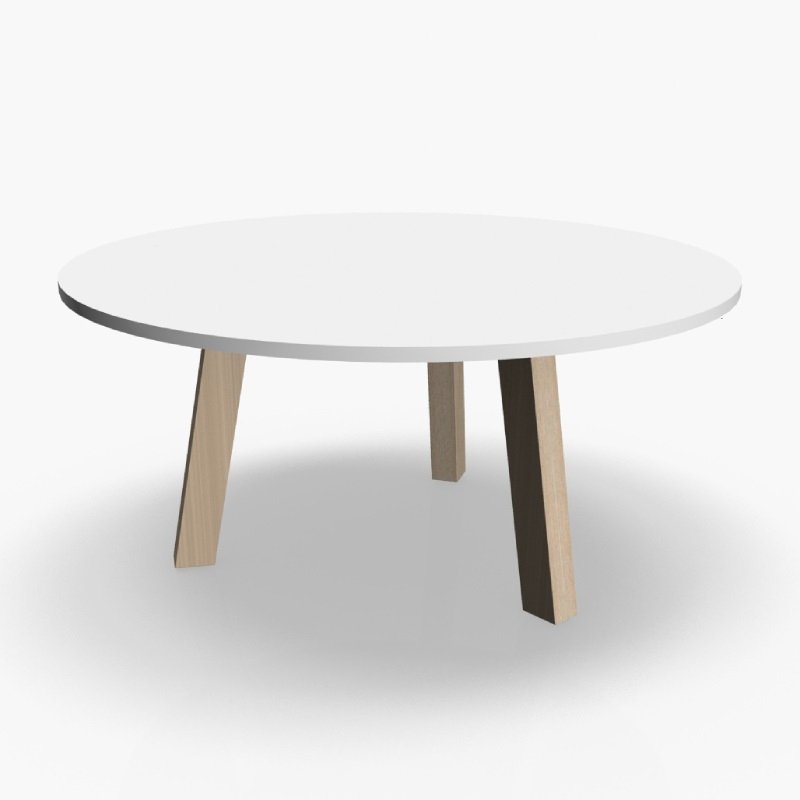 De ronde tafel biedt plaats voor minstens 4 tot 9 personen. Indien u wilt weten hoeveel personen aan de tafel passen, kunt u onze blog lezen over het aantal personen aan een vergadertafel. De ronde vergadertafel in hout is mogelijk in diverse afmetingen, bladkleuren en kleur tafelonderstellen. Het 25mm dik melamine tafelblad heeft een 20cm overstek t.o.v. het onderstel.