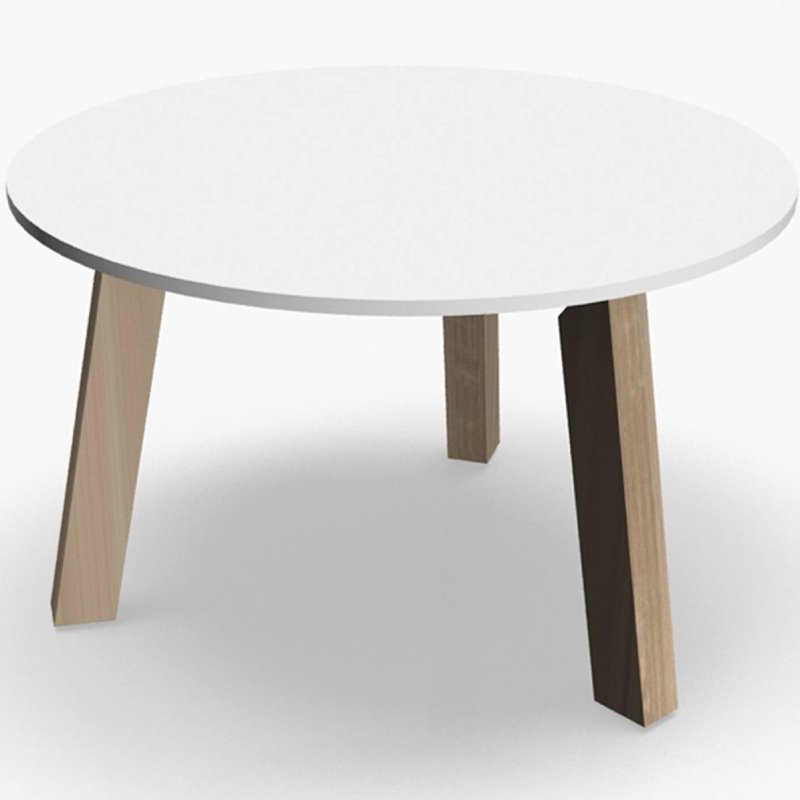 Ronde vergadertafel Hybrid is een houten tafel met een minimale afmeting van Ø120cm. De vergadertafel in rond komt uit de Hybrid collectie en is gecreëerd volgens het concept dat het meubilair inspeelt op de dynamische werkplek en een multifunctioneel karakter heeft. Zo kan de vergadertafel ook gebruikt worden bij individuele laptopsessies, vergaderingen, presentaties of lunches. De multifunctionele tafels zijn van fundamenteel belang voor een Hybrid interieur.