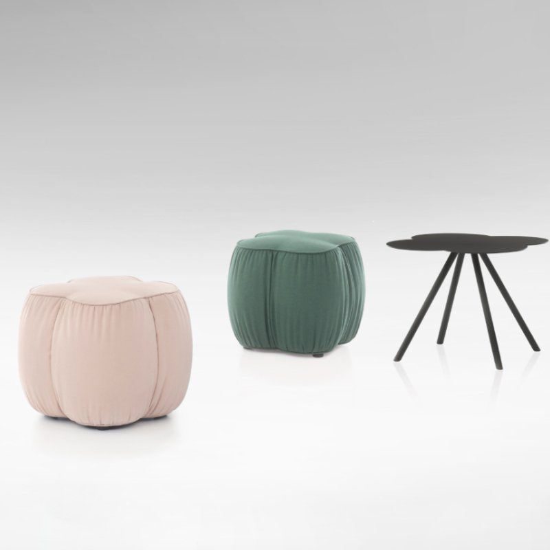 Combineer Poef Klover ook met de bijpassende bijzettafel Klover voor een complete set.