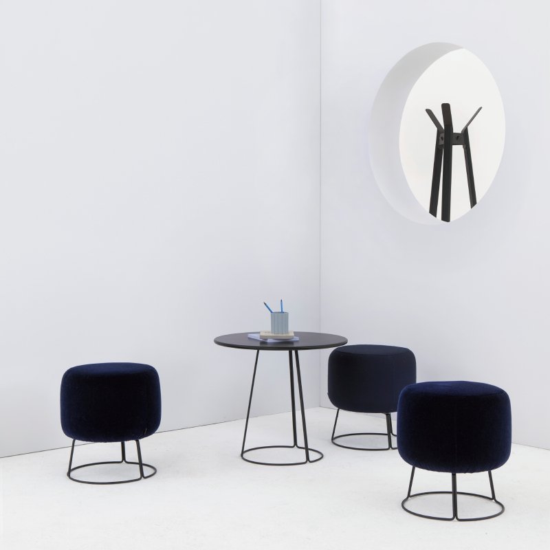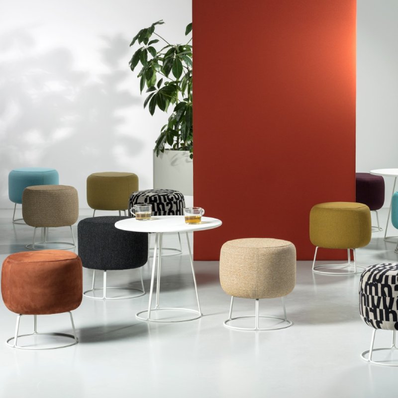 De ronde hocker is uitstekend in te zetten als extra zitje voor in de wachtkamer of loungeruimte, maar kan ook prima als voetenbankje gebruikt worden.