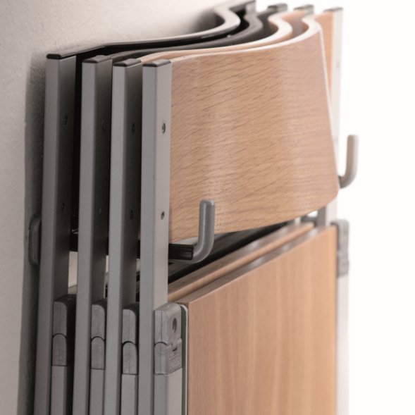 De klapstoel is eenvoudig aan de wand te hangen met een muurbeugel, goed voor 2 of 4 klapstoelen. Deze handige kantinestoel is multi inzetbaar. Hij kan uitstekend ingezet worden als zaal-/conferentiestoel, wachtkamerstoel en als vergaderstoel.