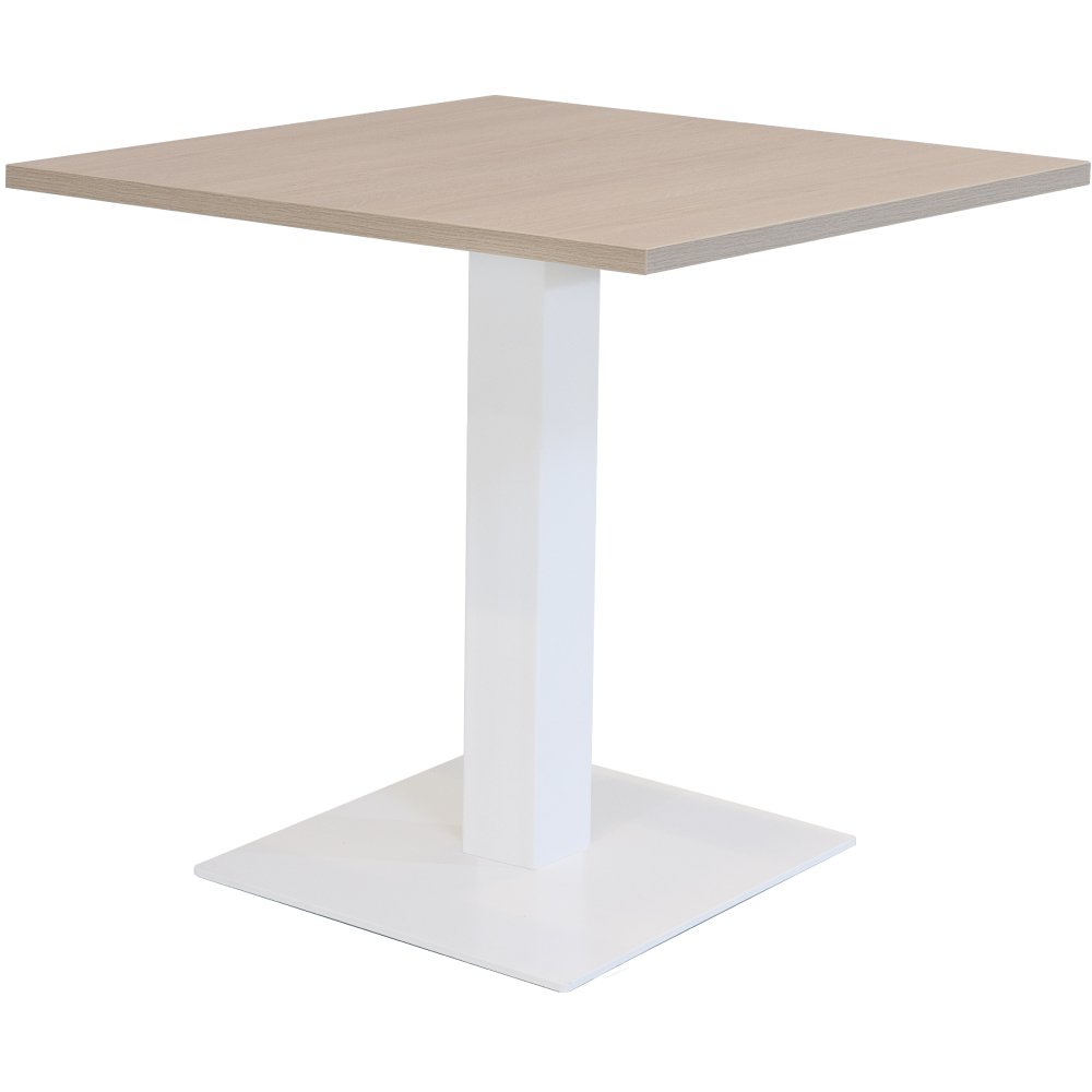 De kolomtafel met vierkante voet wordt vaak ingezet als vierkante vergadertafel en als kantinetafel. De solide tafel is voorzien van een tafelblad in een standaard afmeting van 80x80 cm. Het stalen onderstel van deze stevige tafel is mogelijk in verschillende kleuren en is leverbaar in een hoogte van 75cm.