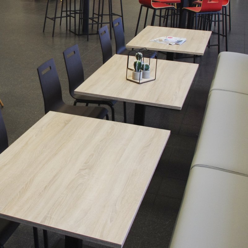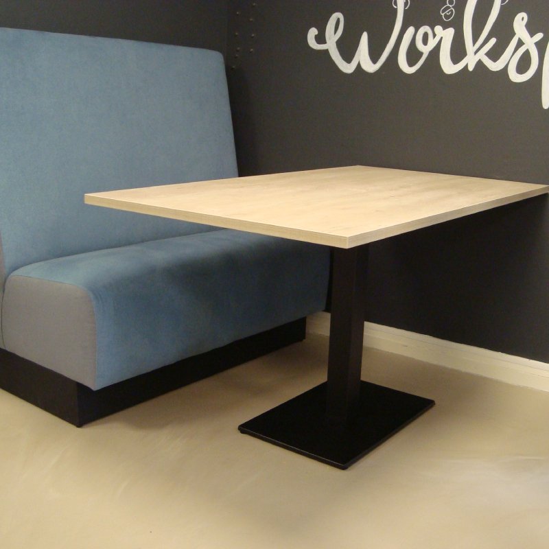 De koffietafel wordt gecombineerd met een melamine tafelblad in diverse kleuren. De kolomtafel is een praktische toevoeging voor de kantine en kantooromgeving en laat zich makkelijk combineren met diverse stoelen en treinbanken.