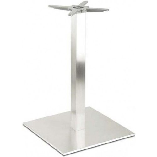 Het onderstel van deze kolomtafel is voorzien van een zware vierkante voet met een kolompoot van 8x8cm. Het tafelonderstel heeft een hoogte van 110cm en is voorzien van een gietijzeren bladkruis voor het tafelblad. Het onderstel is leverbaar in zwart, wit, RVS gepolijst/ RVS mat geborsteld en in diverse kleuren.