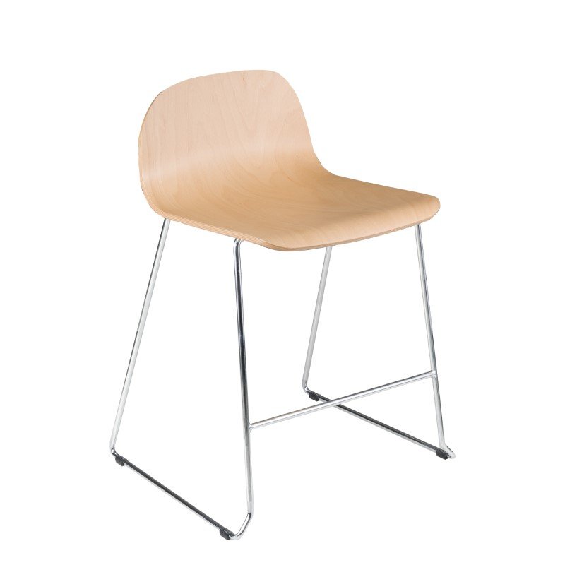 Kruk Carvi hout slede is een comfortabele hoge kruk met rugleuning. De stevige barkruk is mogelijk in verschillende zitschalen, van hout of laminaat. Beide uitvoeringen zijn mogelijk in vele kleuropties. Het onderstel van de hoge kruk bestaat uit een Ø1,1cm draadstalen sledeframe met een voetensteun.