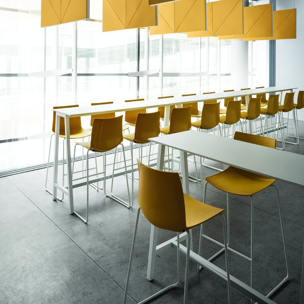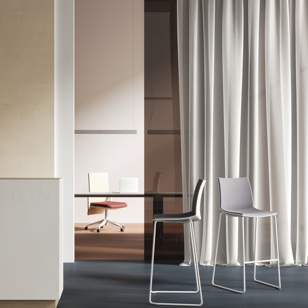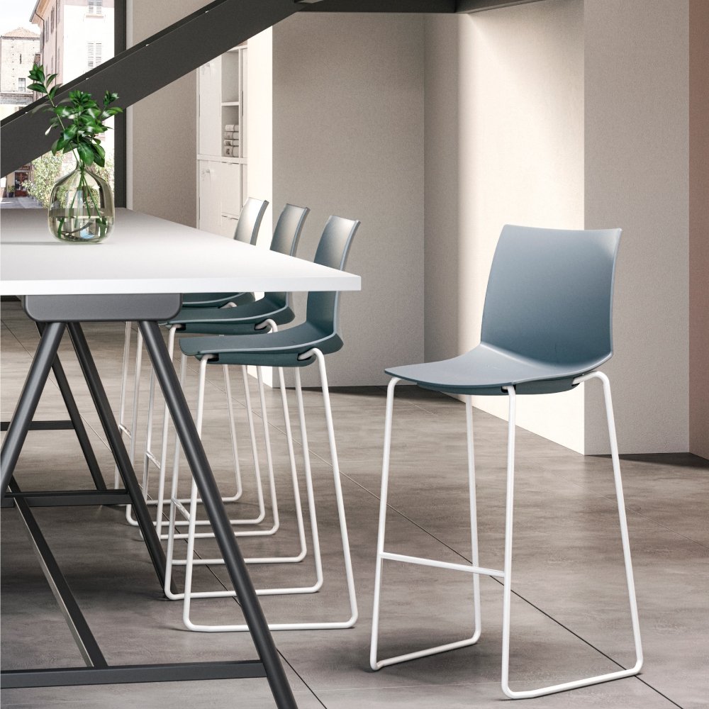 Kruk Point is in te zetten als barkruk in de bedrijfskantines, cafés of restaurants. Het frame bestaat uit een slede onderstel dat mogelijk is in diverse kleuren. Kies de kleur van de comfortabele kruk en bepaal de uitstraling van uw interieur.